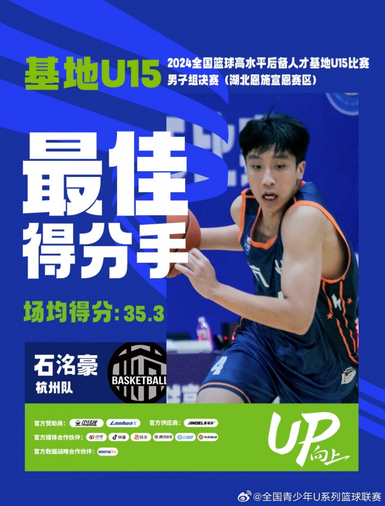 U15男子组决赛单项王:石洺豪场均35.3分张宇辰三分命中率51.2%