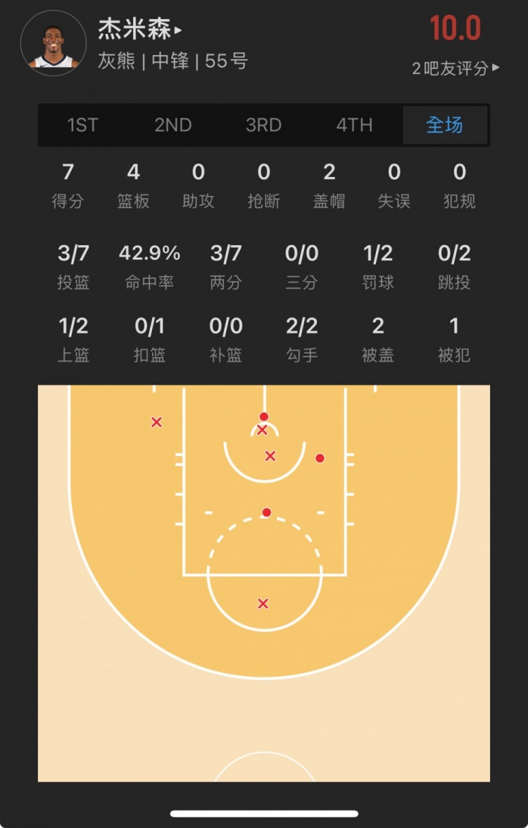 灰熊落选秀 特雷-杰米森 出战19.0分钟