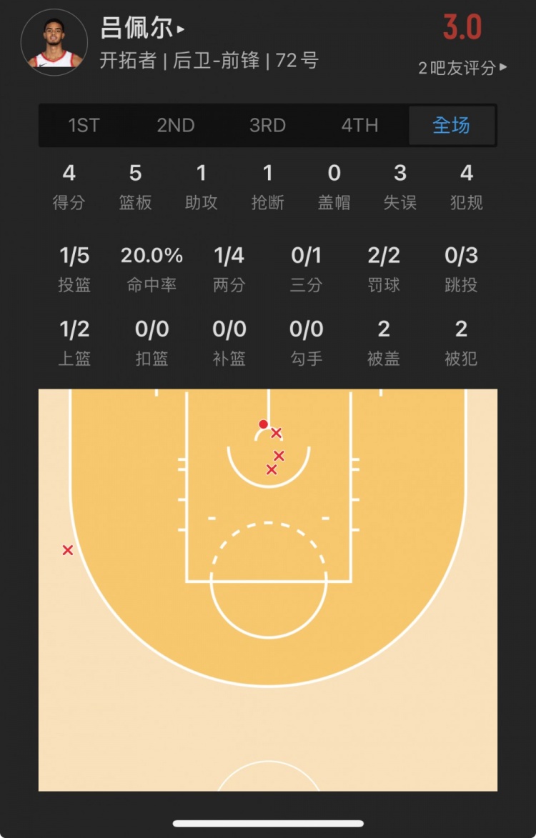 开拓者43号秀 拉扬-吕佩尔 出战34.8分钟