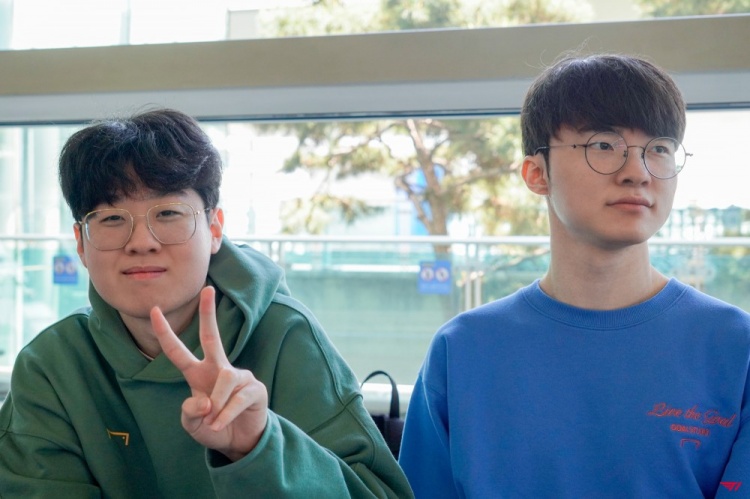 4月29日讯 T1电子竞技俱乐部官博更新,发布了选手们在机场的花絮返图,Gumayusi和Zeus选手玩翻绳~