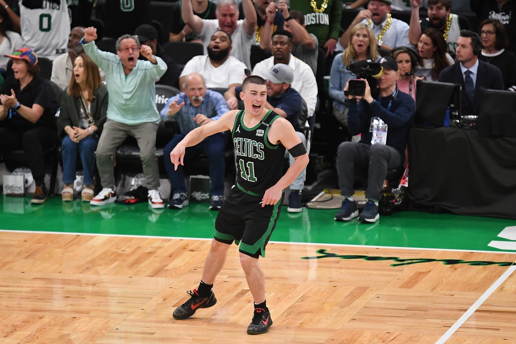 本场比赛,凯尔特人球员普理查德出战12分钟,三分2中1,得3分1板2助1断。在第三节最后时刻,他命中压哨超远三分。