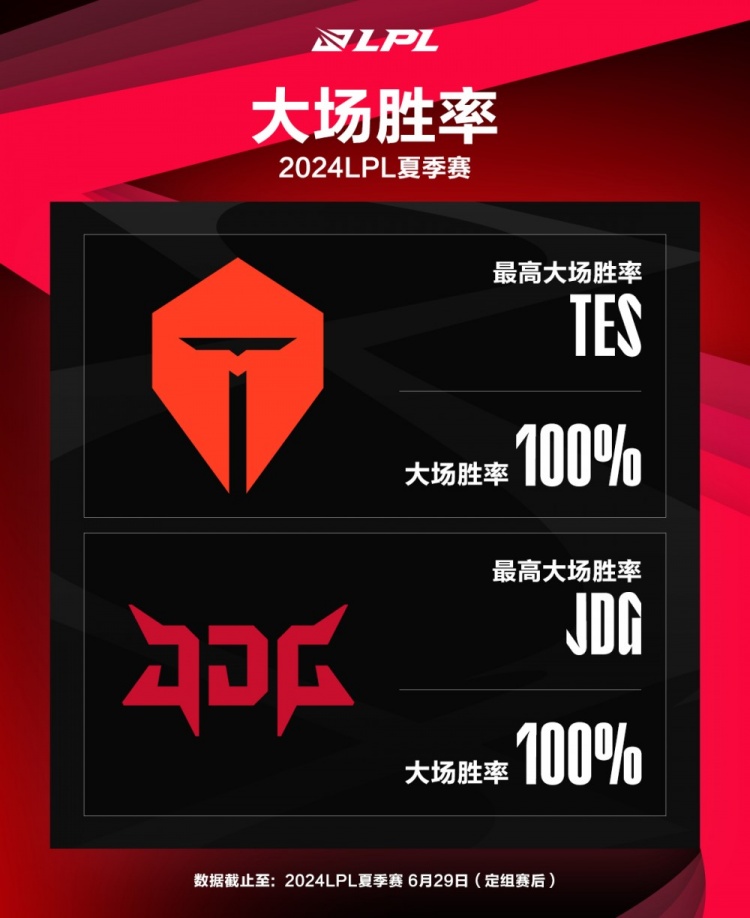 最高大场胜率:100% TES、JDG