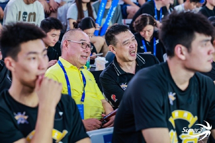陈国豪、矣进宏、主教练闵鹿蕾等北京控股五人篮球俱乐部成员现身超三联赛现场,为北控三人篮球俱乐部加油助威。