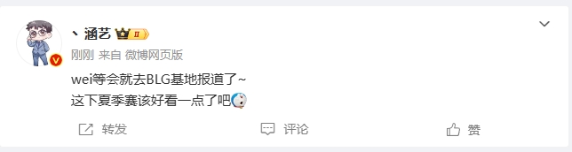 涵艺:Wei等会就去BLG基地报道了!这下夏季赛该好看点了吧