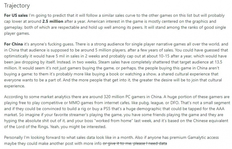 根据市场占比分析,来自中国销售占全球比例一直在下降,中国玩家达到饱和的速度比其他地区快,是因为中国本土文化适应力强。总销量没有放缓,这可能意味着游戏在全球范围内接受度在提高。