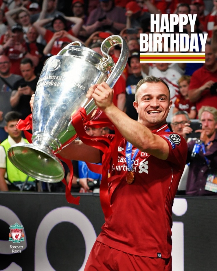 10月10日宣 今天是瑞士前锋沙奇里的33岁生日,老东家利物浦为他送上祝福。