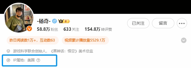 去参加TGA了《黑神话:悟空》杨奇微博IP显示为美国!