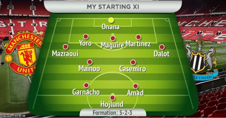 12月28日宣 节礼日对阵狼队,曼联队长布鲁诺-费尔南德斯被罚下将无缘出战纽卡,而乌加特本场吃到黄牌累积五黄同样停赛。因此,对阵纽卡的比赛,红魔主帅阿莫林必须应对这两将缺阵的局面,《曼彻斯特晚报》对本场比赛首发阵容进行了预测,梅努和卡塞米罗搭档后腰。