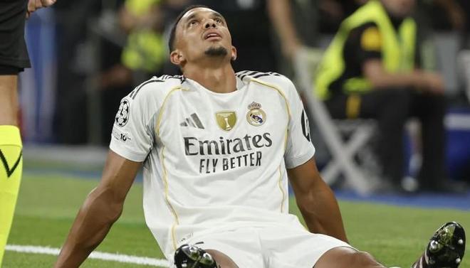 据报道,阿诺德左腿肌肉受伤,他在为皇马首次参加欧冠比赛时仅仅坚持了3分钟就不得不被替换下场,由卡瓦哈尔顶替,而后者最终被罚下。