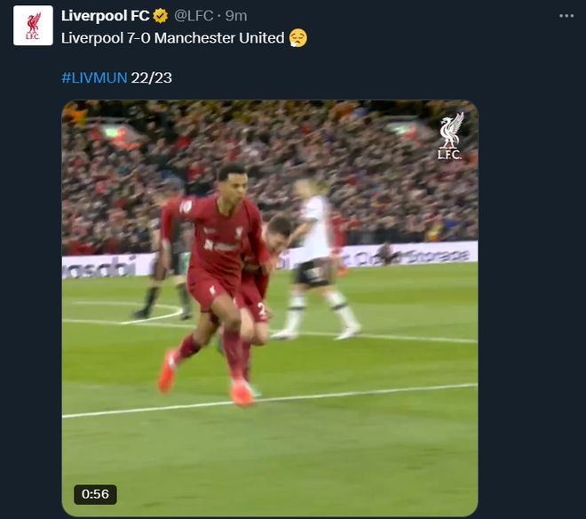 雷速体育10月18日宣 新赛季英超首回合“双红会”即将在北京时间明晚23:30打响,赛前,利物浦官方社媒还特别发布了22/23赛季,利物浦主场7-0狂胜曼联的经典名局。