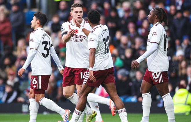 客场面对伯恩利,阿森纳取得了完胜,早在上半场取得2-0的领先优势。第14分钟,赖斯主罚将球送入后点,加布里埃尔摆渡,约克雷斯头球攻门得手。第35分钟,约克雷斯大范围转移球,特罗萨德送出传中,赖斯头球破门。下半场,双方均未破门,最终阿森纳2-0击败伯恩利,继续领跑积分榜。