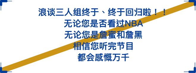 千呼万唤始出来,浪谈NBA终于终于终于更新了!!!一则小小的声明:为了维护评论区友好的讨论气氛,本期节目采取付费制,但是绝对物超所值!