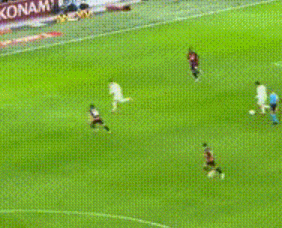 比赛中,罗马后场断球试图快速反击,40岁莫德里奇跑过来,22岁的苏莱试图用速度甩开这个克罗地亚老头。而魔笛先得球回传给门将,破坏了对手的反击机会!