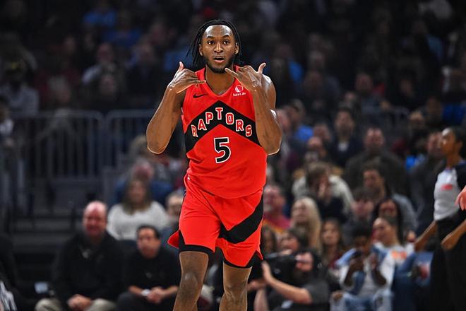 本场比赛中,猛龙的先发控卫伊曼纽尔-奎克利(Immanuel Quickley)的表现还是相当不错的。奎克利全场出场31分52秒,投篮13中10,三分线外7中5,得到了25分1篮板6助攻的数据,还有2次失误和2次犯规,正负值为+13。奎克利在进攻端大杀四方,展现出了超强的得分能力,他的进攻效率非常突出,得分手段也是相当丰富的,对手也没有办法对他进行有效地限制。在出手次数不多的情况下,他也是抓住了机会得到了不少分数。不仅如此,奎克利在传球和组织方面也能够起到一定的效果,他在进攻端的功能算得上是非常全面。奎克利在其他方面也没有出现什么太大的问题,他在进攻端的表现更是给比赛的胜利起到了决定性的作用。