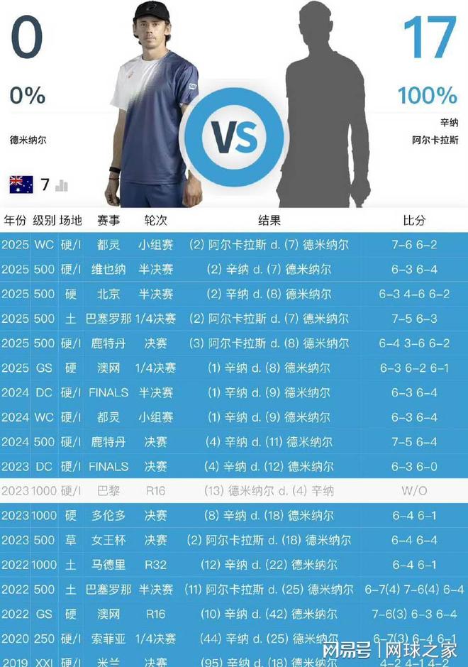 展望接下来的半决赛,德米纳尔又对位上了老苦主辛纳。在迄今为止的多次较量中,德米纳尔还未尝一胜。纪录就是被用来打破的,德米纳尔能否在终结对阵前十的连败纪录,从过往与辛纳的交锋中总结经验教训,试着扳回一城呢?