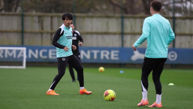 北京时间11月16日凌晨,布莱顿官方分享了三笘薰单独训练的照片。