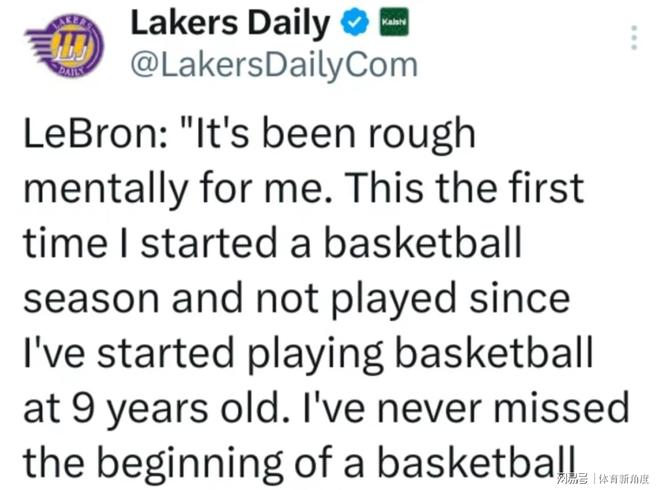谈及新秀,詹姆斯坦言:“这对我来说,在精神层面无疑熬。自打我9岁开始接触篮球以来,这还是我头一回在赛季揭幕战中未能披挂上阵。我从未缺席过任何一个赛季的开局之战。”