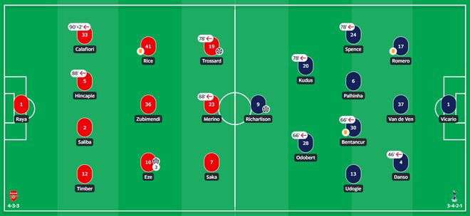 阿尔特塔本场的战术布置堪称大师手笔。面对主力中锋缺阵的情况,他果断变阵,将夏季新援埃泽置于进攻核心位置。