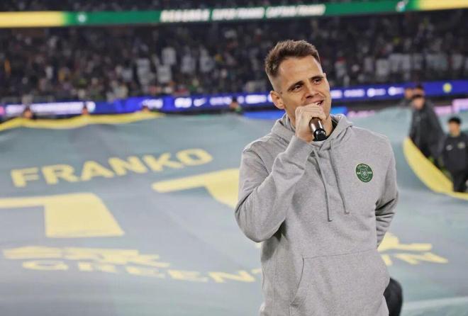 弗兰克的告别战近乎完美,出场68分钟三次破门,尽管有两次被VAR判定无效,但依旧有一个漂亮的头球留在了这里。赛后,站在场地中央巨大的11号球衣前,弗兰克向全场超过2.8万名观众表示感谢,几度泪下,最后,他用中文领唱《月亮代表我的心》,全场随唱。