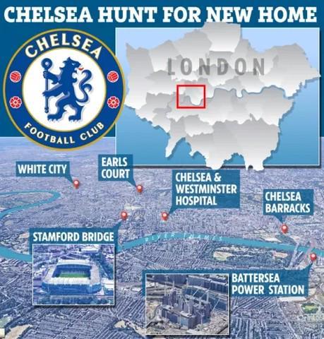阿布拉莫维奇的早期计划是迁往沃姆伍德斯克拉布斯监狱附近的奥德奥克科蒙,其后俱乐部继续寻找其他选址,包括将球场融入现已成为高端商业中心的巴特西发电站的建筑结构中,这一独特方案最终搁浅。俱乐部还考察过切尔西军营、怀特城以及切尔西-威斯敏斯特医院,许多人当时认为厄尔斯考特最可能成为最终选项。