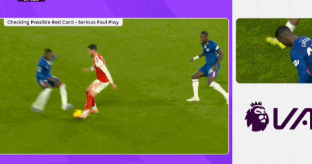 第35分钟,凯塞多防守时踩踏梅里诺的脚踝,自己也因此扭伤膝盖,二人双双痛苦倒地。安东尼-泰勒回看VAR后示意前者严重犯规,出示直接红牌,亿元先生被罚下,切尔西剩下10人应战。