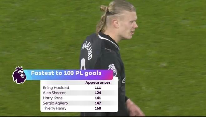 话题英超最快百球纪录!哈兰德为英超立新标