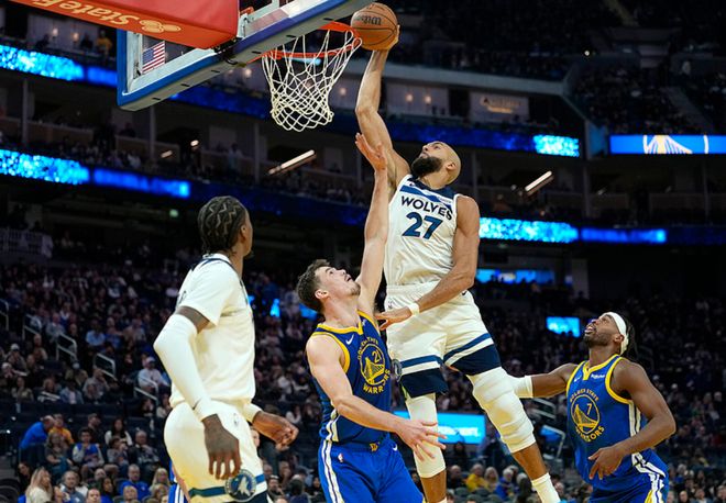 霍华德的这个NBA纪录很难被打破,但有个现役球员已经逼近了该纪录,他有希望打破该纪录,此人就是森林狼的戈贝尔。北京时间2025年12月13日,森林狼客场挑战勇士,森林狼少了爱德华兹,勇士少了追梦、库明加,此战库里砍下了39分5板5助,但勇士最终仍以7分之差输给了森林狼,因为戈贝尔爆发了。他出战35分钟,13中11,3罚2中,砍下24分14板1助2断1帽,投篮命中率达到84.6%。