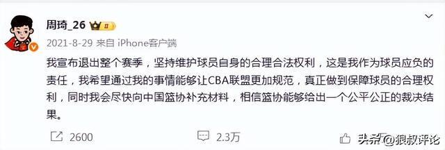 周琦在个人社媒做出更多的爆料,与新疆广汇俱乐部已经达到无法合作的地步,尤其是一些高层的矛盾公开化。