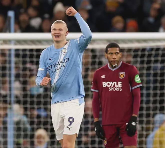 比赛从第一分钟就失去了悬念。第5分钟,福登的射门被扑出,哈兰德如同一头嗅到血腥味的猛兽,出现在最致命的位置,冷静补射得手。这仅仅是开始。铁锤帮的防线在他的冲击下显得摇摇欲坠,半场结束前,又是哈兰德的头球摆渡,助攻赖因德斯抽射破门,将比分扩大为2-0。