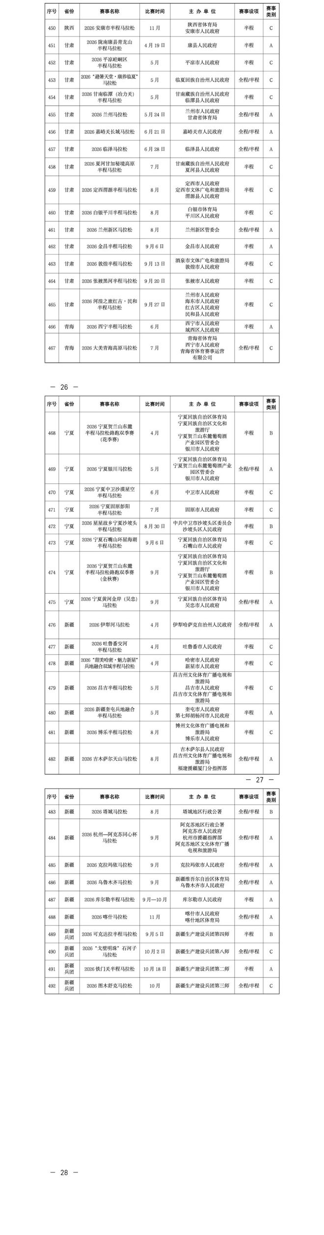 现将2026年马拉松赛事目录予以公布,如有计划调整,须严格履行相关报批程序。