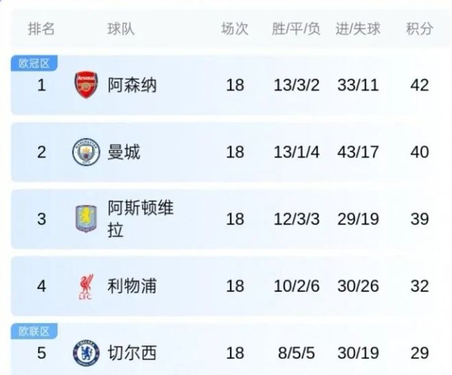 然而更加令人没有想到的是,仅仅过了一个赛季,风雨飘摇的曼城就回归了正常的状态。目前在这18轮战罢基础上,他们13胜1平4负拿到40个积分 ,仅以2分之差暂时排在第二名,给阿森纳造成了巨大的压力。不少的专业机构也是预测曼城,在本赛季是有极大机会去挑落阿森纳领跑优势的,就像过去他们做到的那样。