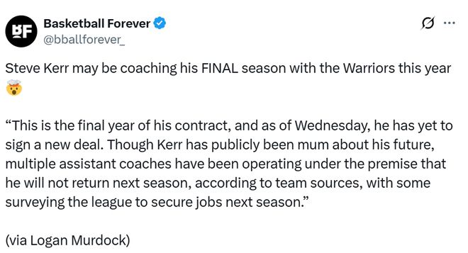 - NBA | 曝科尔下赛季可能离开勇士!合同年仍未续约助教已经开始找工作