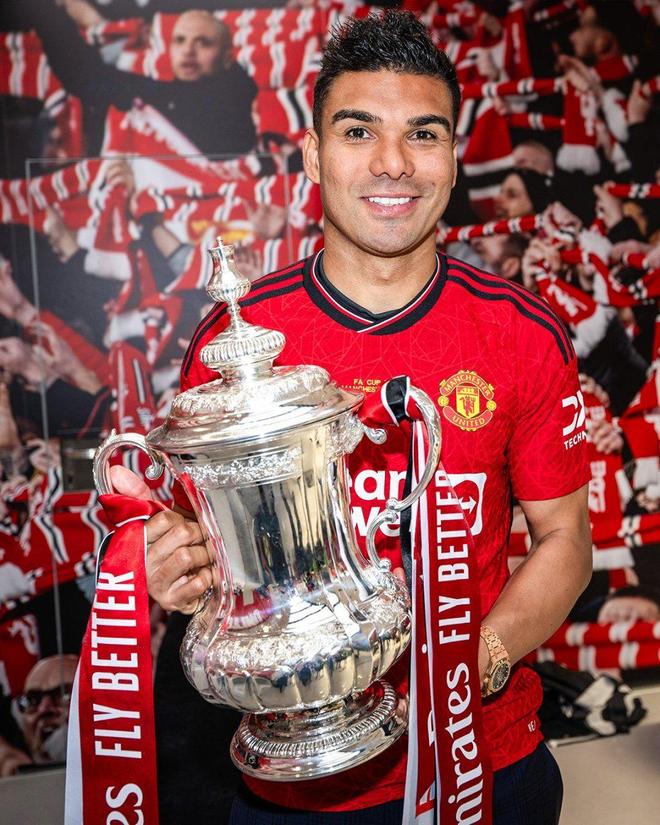 初到老特拉福德的卡塞米罗,确实没有辜负期待。强硬的对抗、精准的拦截、关键时刻的进球能力,让他迅速成为中场定海神针。2023年联赛杯冠军,2024年足总杯夺冠,这两座奖杯,都有卡塞米罗不可忽视的身影。他不是数据型球员,却是典型的“赢球型中场”。四个赛季,146次出场,21粒进球。这是一份对得起队徽的履历。